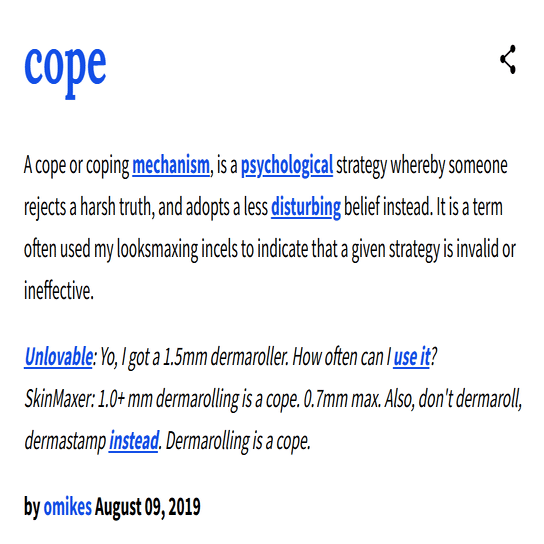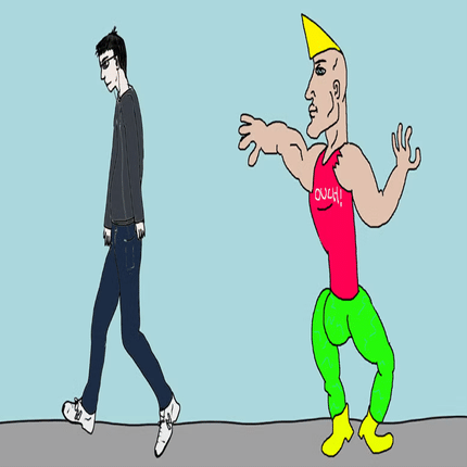 2025.08.22 著者のコラム Mystery Parrotコラム第3回:インセル文化はアメリカン・スラングの苗床 著者 Mystery Parrot (ミスパロ) 流行語やスラングの多くは、言語を問わず、「社会の周縁の集団から誕生することが多い」という説を耳にされたことがある方は多いのではないでしょうか。日本だったら例えば「極道社会」とか「2ちゃんねらー」とか「女子高生」などが思い浮かびますね。この種の言葉は初めは「身内だけに通じる隠語」として生まれ、次いで「仲間内の絆を強化する手段」として使われ、時には「外部世界からの防衛」という役割も果たします。 アメリカの場合も、スラングを生み出し、マジョリティ文化の語彙に多大な影響を与えてきたマイノリティ集団は多数あり、例えば「アフリカ系アメリカ人 (AAVE)」、「ギャング」、「LGBTQ+」、「ゲーマー」、「MAGA」、「スウィフティーズ (テイラー・スウィフトのファン層)」などが思い浮かびます。ですが、ここでは「他のどのコミュニティよりも現代スラングの発展に大きく貢献してきた」と言われる「インセルたち」と、彼らが生み出した語彙に焦点を当てたいと思います。 「インセル (incel)」は「自発的ではない」を意味する involuntary と「禁欲」を意味する celibacy を合体させたもの。「異性との性関係を望んでいるのに叶わない」と主張する人々が、自らをそう呼び始めたのが発端。あえて日本語にするなら「非モテ」「恋愛弱者」という感じでしょうか。 インセル文化は、当初は 4ch などの匿名掲示板で花開きました。4 ch にはユーザーアカウントが存在せず、投稿はすべて匿名。そのため、「年季の入ったインセル」が仲間内で自身が古株であることを匂わせて優位に立つためには、グループ内で共有されているスラングを駆使することが必要でした。このある意味、特殊な圧力が、多くのインセル用語が生み出されるきっかけになったと言われています。 インセル用語で最も有名なのは、「赤い錠剤」を意味する Redpill (レッドピル) 。カルト的 SFアクション映画『マトリックス』をご覧になった方は、キアヌ・リーヴス演じる主人公が、「レッドピル」を服用して「これまで見えなかった世界の真実に目覚める」という筋書きを覚えておられるかも。インセル教義の土台は、「女は利己的で浅薄な生き物」で、「外見もしくは経済力に恵まれない男には一瞥もくれない」ということ。ここから「現代社会は実は女に有利な構造になっていて、大部分の男は虐げられた存在なのだ」という世界観につながっていきます。インセルたちは、「この『真実』に目覚め、インセル教義にハマること」を Redpilled (レッドピル化) と呼びました。 ■引用画像 非モテであるがゆえに「童貞 (Virgin)」の自分たち。その対極にある存在は「女どもが群がる性的に勝ち組の男」で、インセル用語では「チャド (Chad)」と呼ばれます。「チャド」はイギリスの男性名ですが、1990年代のシカゴでは「裕福で都会的な若者」を揶揄するのに使われていたので、そこから借用した呼称。 下のイラストは、インセルたちの手でテンプレ化された Virgin (童貞) 対 Chad (チャド) の構図。左側は、前かがみで内省的、すべてを多角的に検討した挙句、何一つ行動には移せない「童貞 (Virgin)」。他方、右側は、筋肉と精力と無頓着な行動力を体現したような「チャド (Chad)」。 「童貞 (Virgin)」がインセルから脱却し、女性と性交渉を果たすためには、(Chad にはなれないまでも) 自身の市場競争力を少しでも底上げし、最適化を図らなくてはなりません。インセルたちは、この行為を Maxxing (マックス化) と呼びました。Maxxing は句動詞 max out(最大化する) に派生しているのですが、インセル界隈では「市場競争力をできる限り高める」というニュアンスで使われます。語頭に別の言葉をつけて使う場合も多く、例えば Looksmaxxing は「容姿を最大限に向上させる」。 インセルたちが集う掲示板では、このようなある種、独特なインセル用語を頻用することが「レッドピルを服用した (redpilled) 正真正銘のインセル」を匂わせる裏付けとなり、たまたま立ち寄った「トーシロ (normie) ではない」ことの証左につながったのです。言い換えれば「インセル特有の語彙をひけらかすこと」こそ、「コミュニティの中でステータスを獲得する必須条件」だったわけです。 と同時に、コミュニティ内部のメンバーは、インセルとしての「純度」を証明し、「なりすまし (fake-cel)」 や「自発的禁欲者 (vol-cel)」のレッテルを貼られることを避けるために、お互いを相手に絶え間なくインセル思想を捏ねくり回していました。これがまた、新たなインセル用語が続々と生み出されるきっかけとなっていったのです。 例えば、mog は「グループ内のアルファオス」を意味する alpha male of the group (AMOG) から派生した言葉。インセルたちはこの言葉を「外見的な魅力や社会的地位などで周囲を圧して、比較対象をみじめに見せる」という動詞として使用