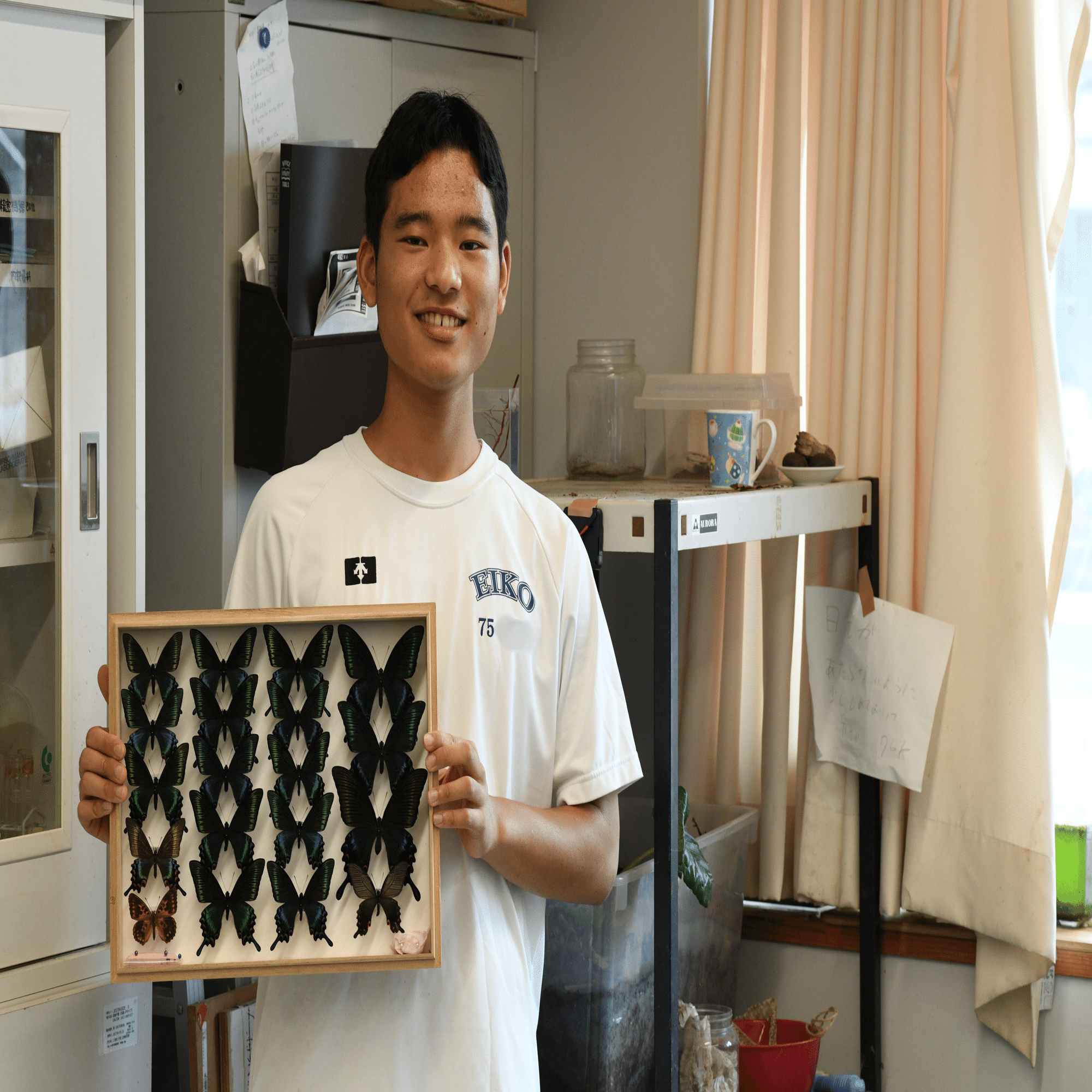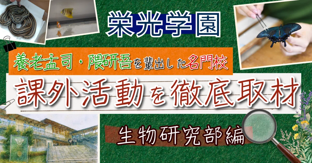 2025.10.17 NEW BERETimes 大人も驚く!? 栄光学園の“好き”を探求する放課後探訪記 〜生物研究部編〜 第2回:栄光学園 生物研究部編 目次蝶、魚、キノコからシマヘビまで—「好き」がつなぐ50人の若き研究者たちみんなで考える「教室」若き研究者たちの部屋後輩へと受け継がれる技と情熱 個性が生きるフィールド-学園内にある裏山栄光祭で輝く「好き」の結晶未来へ挑む探究心 蝶、魚、キノコからシマヘビまで—「好き」がつなぐ50人の若き研究者たち 栄光学園の生物研究部は、中高合わせて約50名が所属する大所帯。蝶や魚、キノコ、ヘビなど研究対象は実に多様であり、部員一人ひとりが「好き」を原動力に探究を深めている。取材を通じて感じられたのは、自然番組さながらの迫力と、研究に向き合う真摯な姿勢であった。 生物研究部の部員たち みんなで考える「教室」 取材当日、部では水槽の漏電事故への対応について話し合いが行われていた。顧問の解説をきっかけに、生徒たちは活発に意見を交わす。そこにあったのは一方的な授業ではなく、互いに学び合う「ゼミ」のような空間であり、研究と教育が一体となった学びの場であった。また、生物研究部では成果を個人にとどめず、パワーポイントで発表する活動もしている。互いの発見を共有する時間は研究を深化させる貴重な場であり、大学のゼミのような空間であった。 生物研究部のミーティングの様子 若き研究者たちの部屋 部室を案内してくれたのは高校生2年生のキャプテン。彼はわずか2歳の頃から蝶に魅せられ、標本づくりに情熱を注ぎ続けてきたと語る。栄光学園を志したのも、学園の敷地内にある広大な裏山で思う存分、生きものを採集できるという、この環境ならではの魅力に惹かれたからだという。 「ミヤマカラスアゲハは同じ種類でも春型と夏型では大きさがまったく違 うのです」と情熱を込めて語りながら見せてくれた標本箱には、長年の経験と自然への愛情が凝縮されていた。 ギンボシヒョウモンの異常型を採集し、専門誌『月刊むし』に報告が掲載されたこともある。さらに魚の研究にも取り組み、沖縄で素潜りして採集した魚を部室で飼育中とのこと。彼の三浦半島での調査結果は論文にまとめられ、神奈川県における初の標本記録として学術的価値を持つ。冒険談さながらの活動でありながら、生物研究部としてその一つひとつが確かな研究成果へと結実している。 生物研究部キャプテン 後輩へと受け継がれる技と情熱 蝶の標本づくりの技術は、キャプテンから後輩へ直接指導されていた。世代を超えて磨かれていく展翅の技は、研究の精神そのものであり、50人規模という大所帯でありながら「好き」を共有する強固な一体感を育んでいた。 蝶の標本づくりを行う生徒 個性が生きるフィールド-学園内にある裏山 部室には数えきれないほどの生物が飼育されており、部員たちは各自のテーマに沿って研究を進めている。沖縄で採集したマングローブやシオマネキを育てたり、埼玉に自ら足を運び、粘菌やキノコを調べに行く生徒もいる。取材中には生徒たちがシマヘビを見せてくれた。二子玉川で採集された個体とのこと。 「目が白くなっていますよね。これは脱皮を控えているんです。脱皮の時 期はあまりマウスを食べてくれないんですよ。せっかくの取材 だったので食事シーンをお見せしたかったんですが…(笑)」 と情熱を込めて語ってくれた。 栄光学園の敷地にそびえる裏山にはアオダイショウの姿も見られ、その個体が部室にも持ち込まれていた。生徒たちにとっては、学校での何気ない日常生活そのものが、すでに貴重なフィールドワークの延長なのである。 生徒が沖縄で採集した生きものたち 左:栄光学園の裏山で採集れたアオダイショウ 右:二子玉川で採集されたシマヘビ 栄光祭で輝く「好き」の結晶 文化祭「栄光祭」では、各部員の研究をまとめた部誌を刊行する。原価率98%で制作されるこの冊子は、生徒たちの「好き」の集大成であり、毎年完売するほどの人気を誇る。きっとこの部誌に記載されている氏名から未来の研究者として活躍する生徒もいるだろう。 部活動の様子 未来へ挑む探究心 部員たちの進路は農学部志望から文系まで多彩である。しかし根底に共通するのは"未知に挑む探究心"だと感じる。「この部室にいる生物が何種類いるのか、正確にわかっていません」というキャプテンの言葉は、生物研究部の多様な活動の核心を突いているように感じる。蝶から魚、キノコ、ヘビまで生徒の好奇心の数だけ生き物たちが教室にいる。自分の好きなものを追い続ける生徒たちの姿は、研究者の卵であると同時に、好奇心を武器に未知を切り拓く冒険者の姿でもあった。 栄光学園中学高等学校神奈川県鎌倉市にある1947年創立の私立男子校で、カトリック修道会イエズス会を母体とする完全中高一貫教育のミッションスクール。「Men for others, with others」(他者のために、他者とともに)を教育精神に、学力だけ